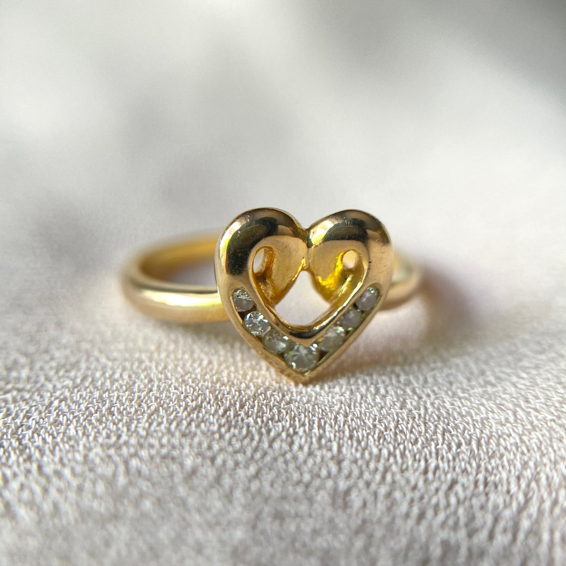 Heart-shaped ring, 18K yellow gold, width 1.4-7.7mm, 7 diamonds.