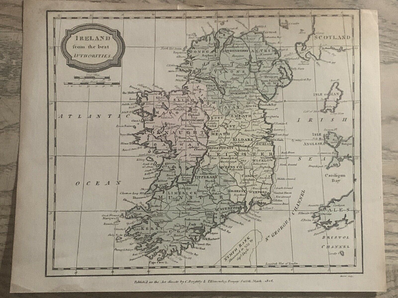 1806 Ireland Hand Coloured Original Antique Map 214 Years Old