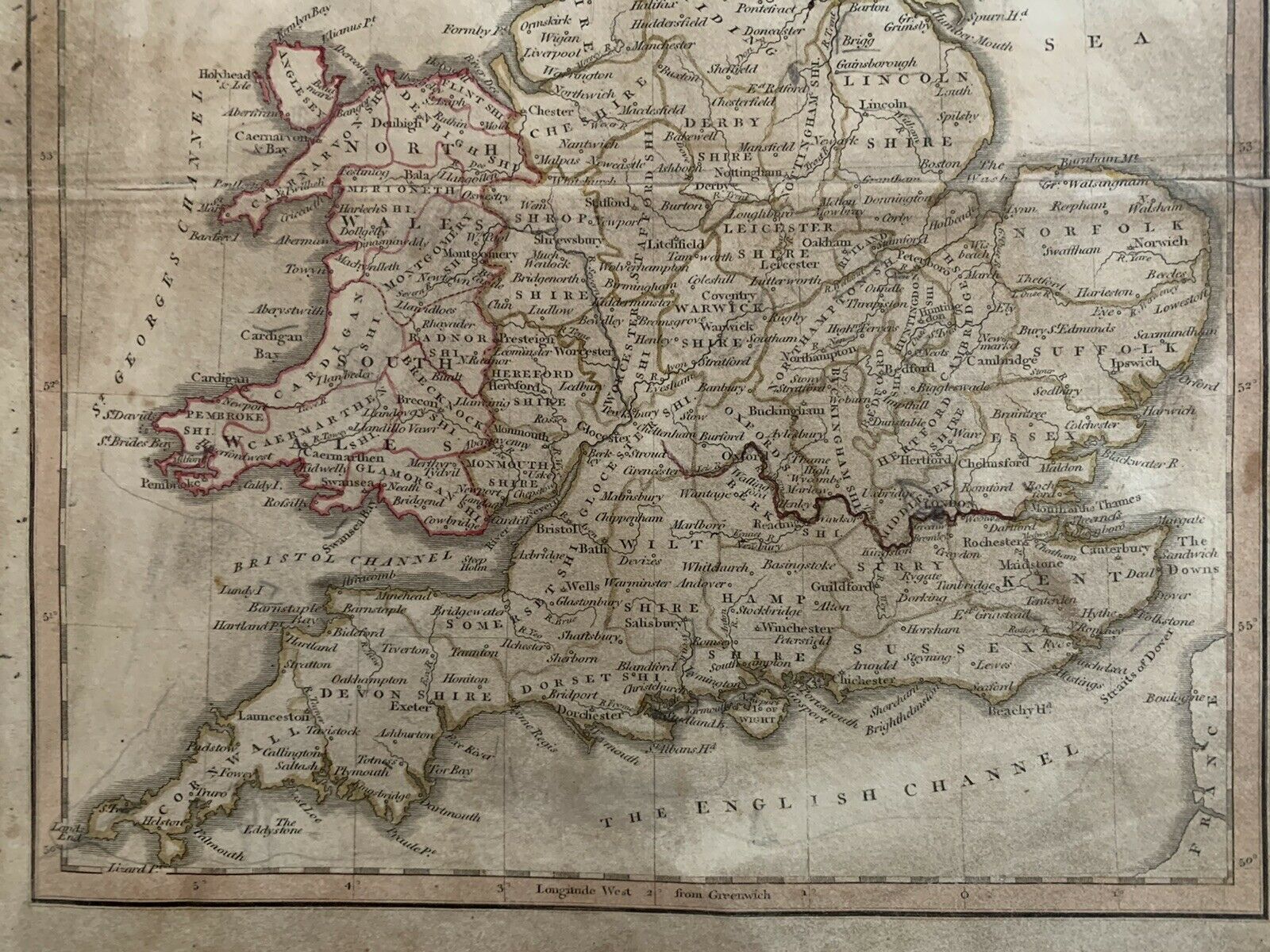 1826 England & Wales Hand Coloured Antique Map By John Cary 194 Years Old