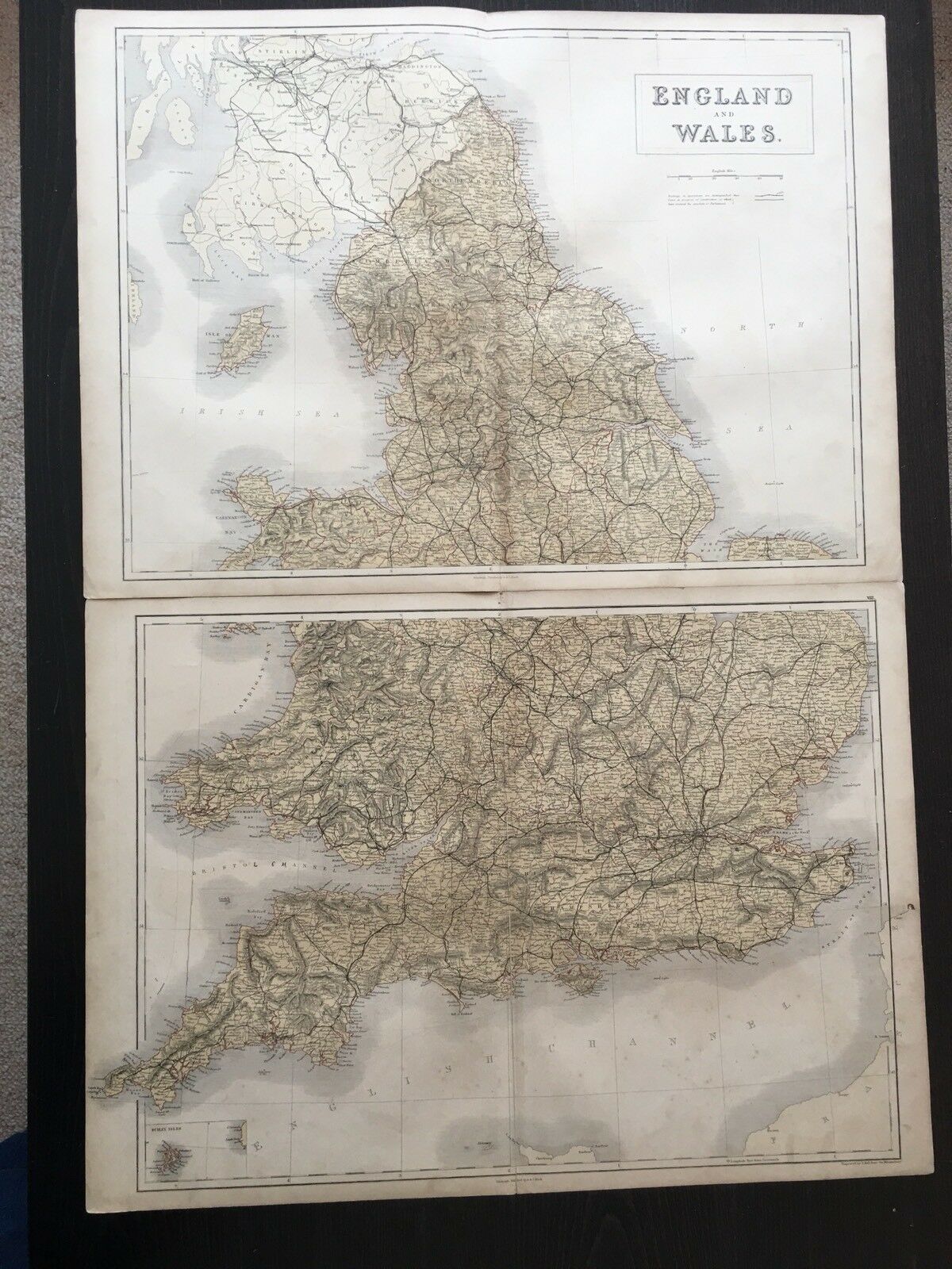 1858 England & Wales Original Antique Map By Adam & Charles Black 160 Years Old