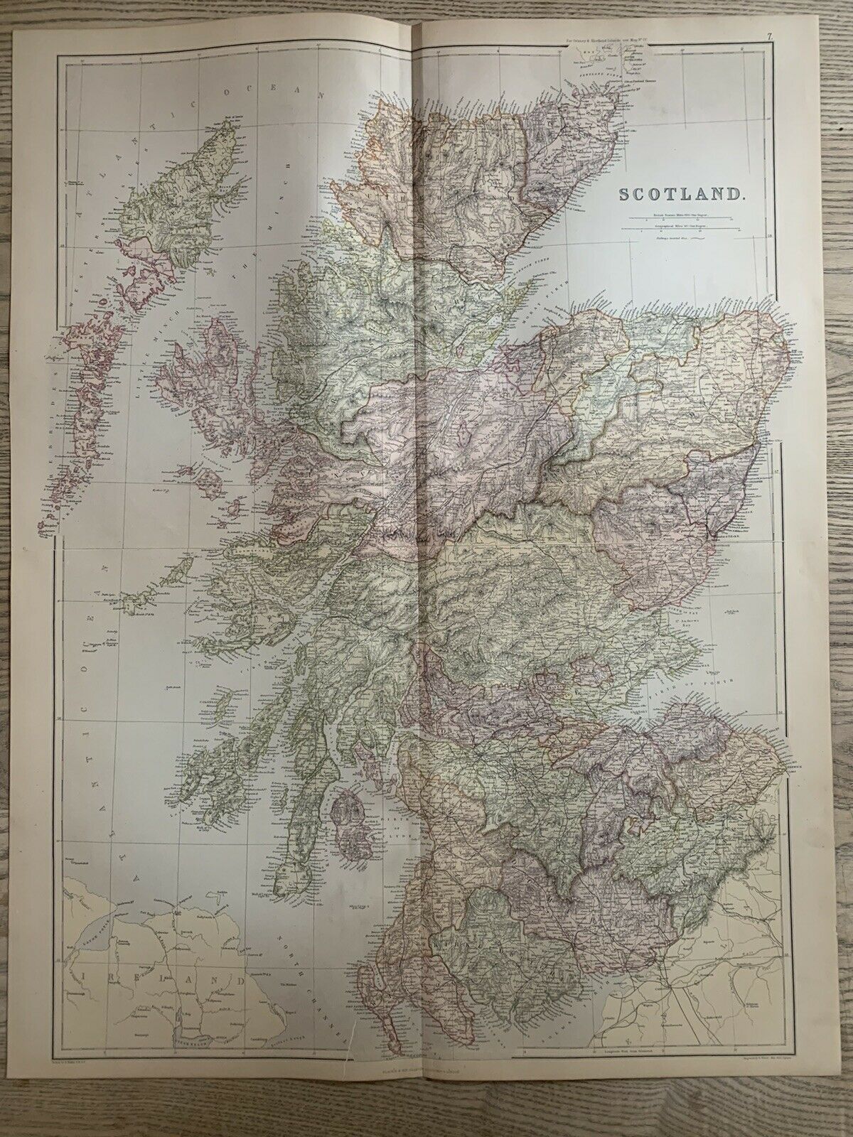 1882 Scotland Large Antique Colour Map By W.G. Blackie