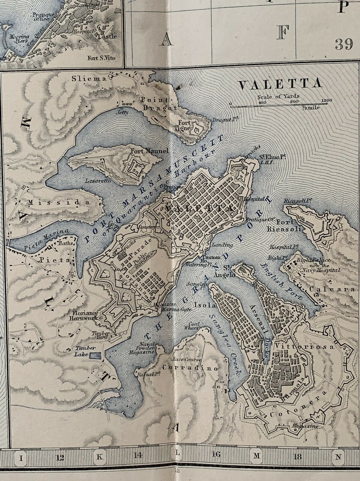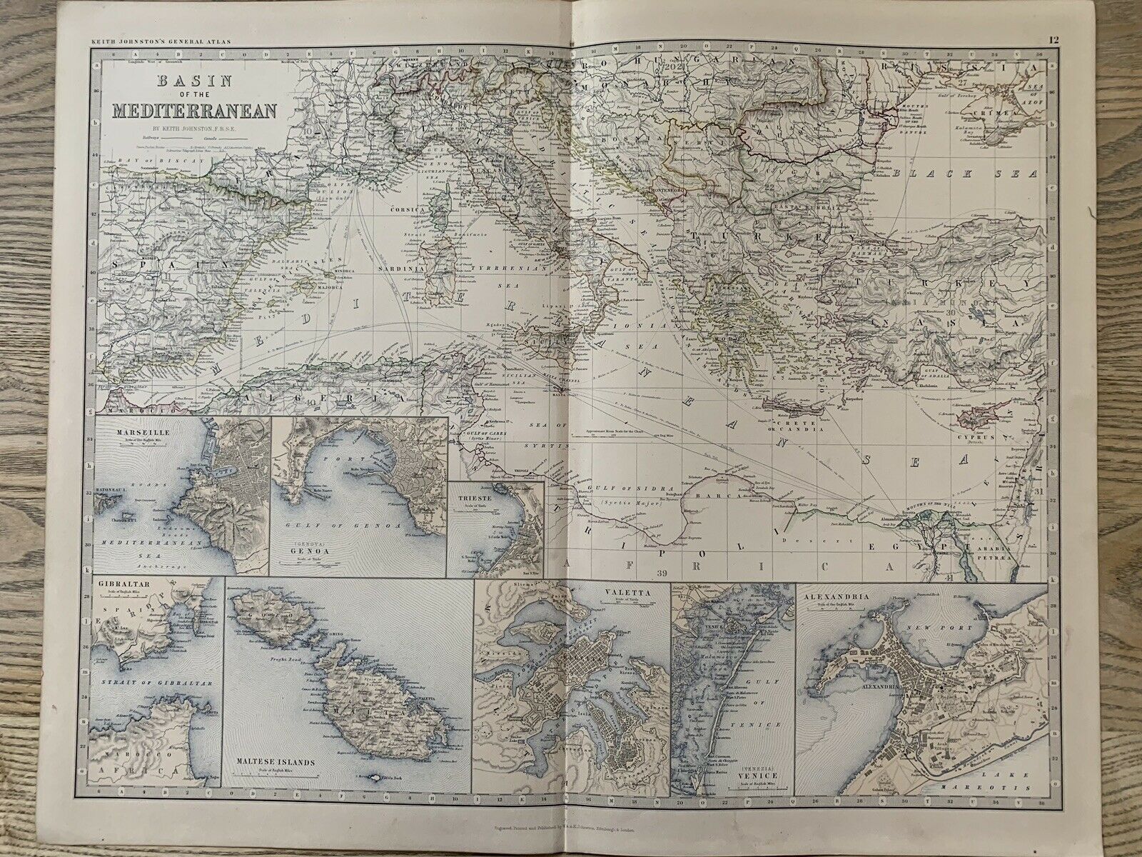 1883 Mediterranean Sea Large Hand Coloured Antique Map By A.K. Johnston