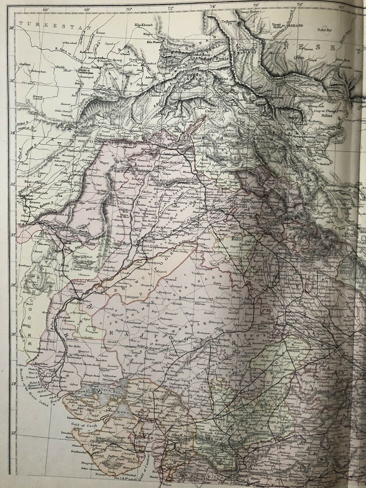 1884 India Large Coloured Antique Map On Two Sheets By W.G. Blackie