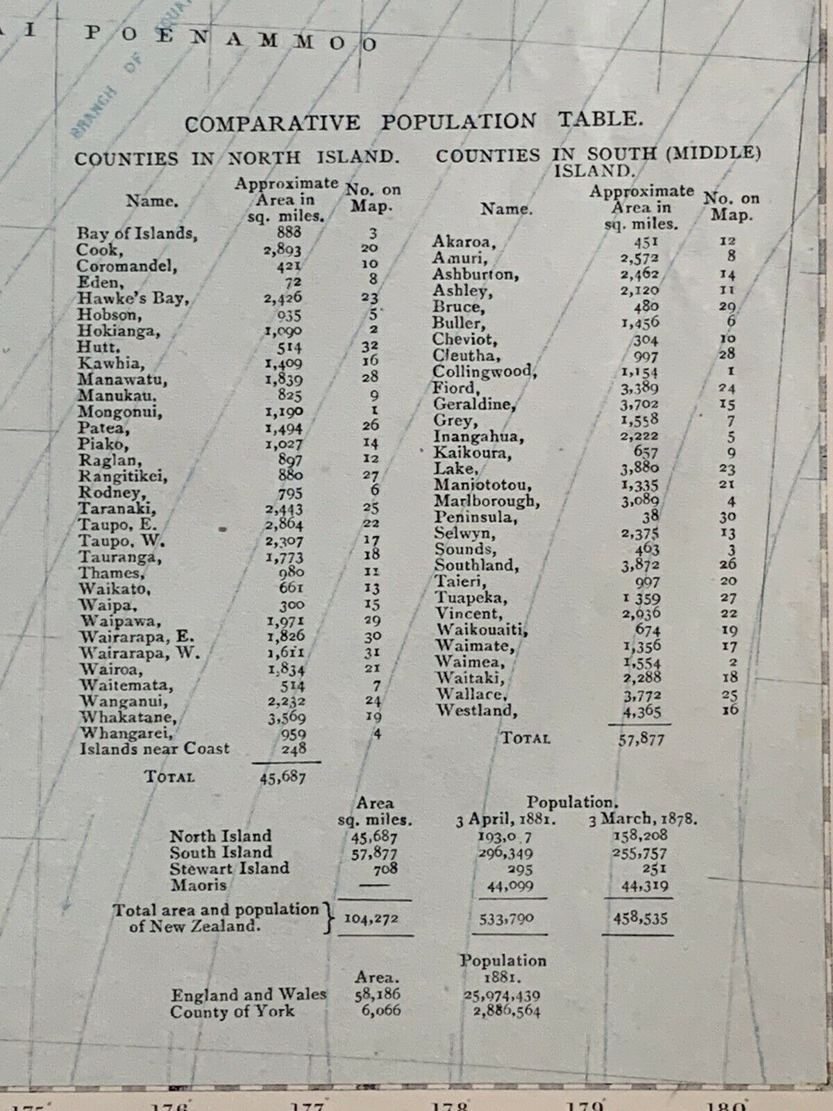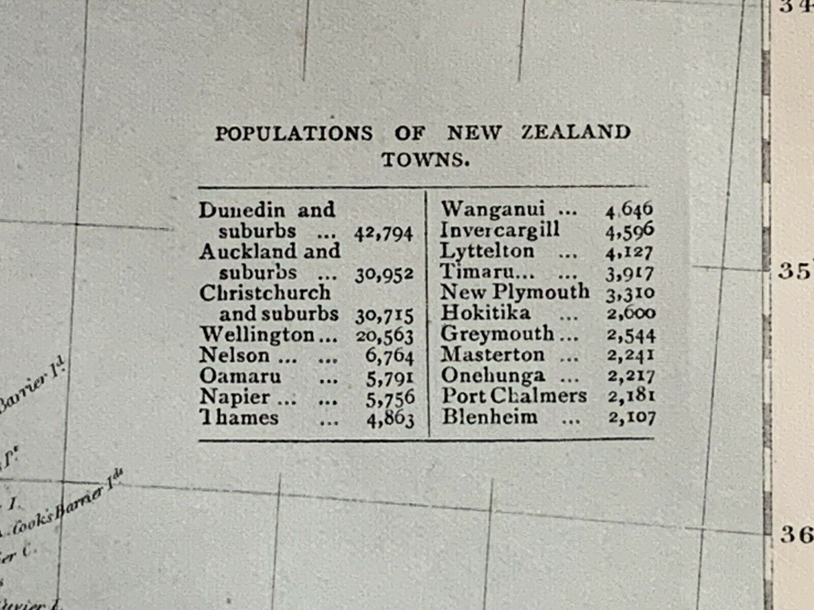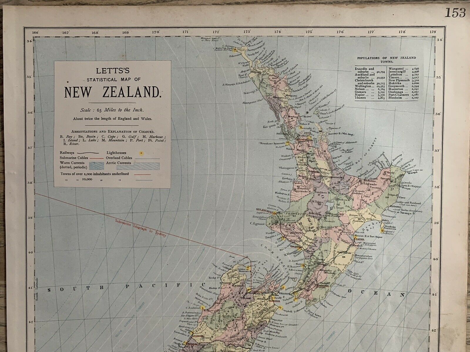 1889 New Zealand Original Antique Map By Letts, Son & Co. 131 Years Old