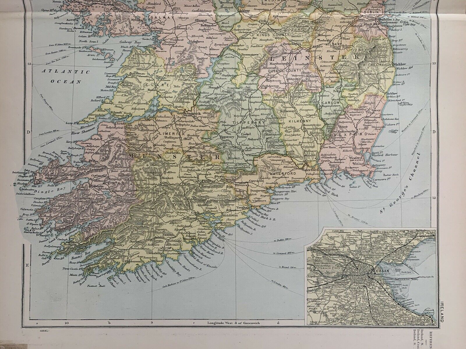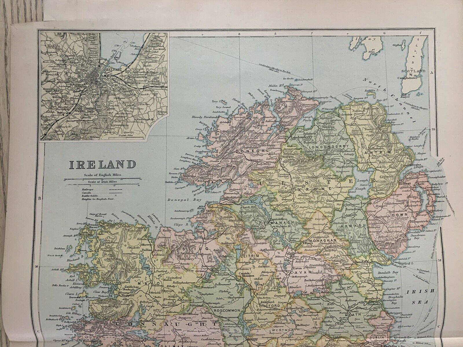 1899 Ireland Original Antique Map By G.W. Bacon 121 Years Old