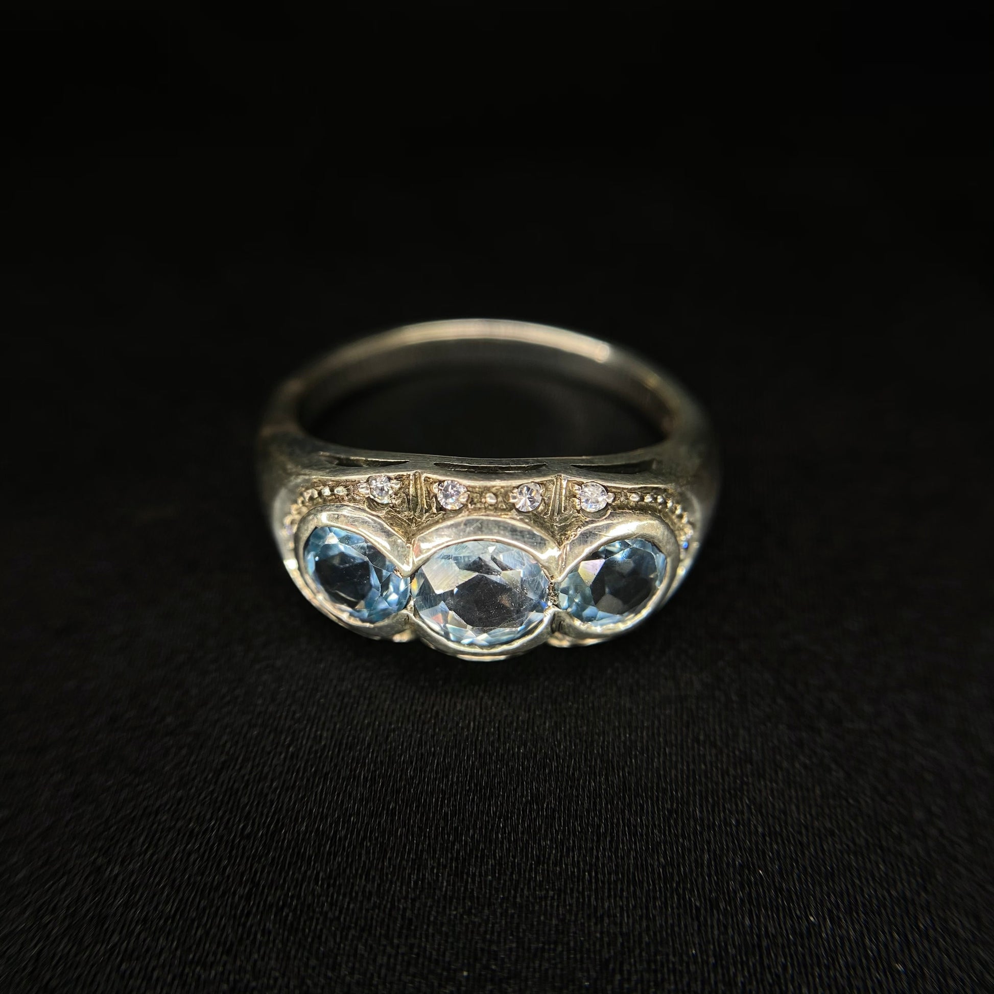 Vintage silver ring with gemstone, c. 1980-90s, 925 sterling silver, width 2.2-8.8mm.
